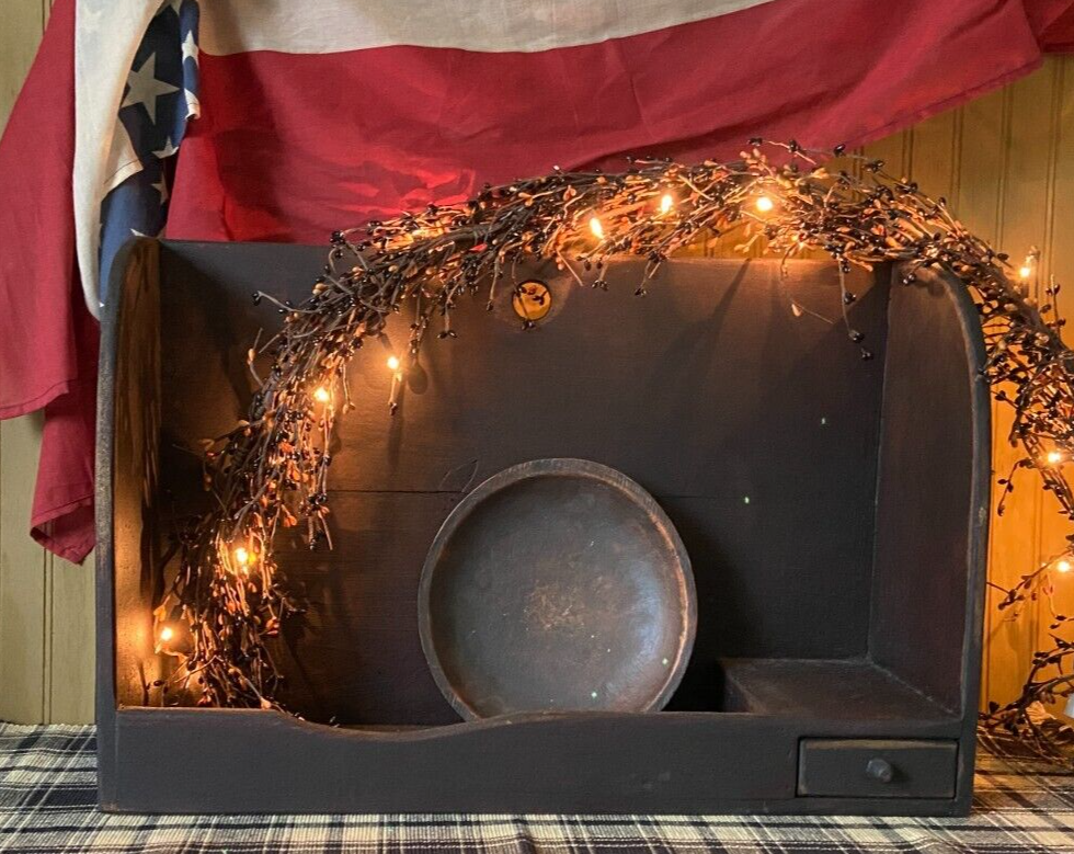 Primitive Handmade Aged Wood Hanging Wall Box W/Drawer